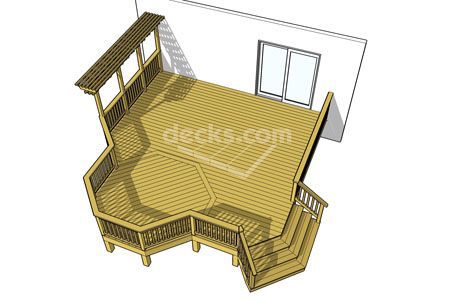 This single level deck features a 12' x 12' octagon pergola positioned in the front center of a 26' x 10' base deck.......
