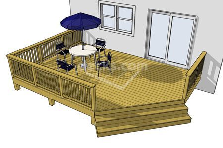 This plan creatively incorporates a 10' x 10' ocatgon into a large 1 level 20' x 16' deck. This design also features......