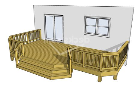 This 24' x 12' deck mixes things up with an angled front face and a central stair that follows the geometry of the undulating perimeter. This deck presents an organic representation of shape and form. A great opportunity to use landscaping to enhance features of the deck.