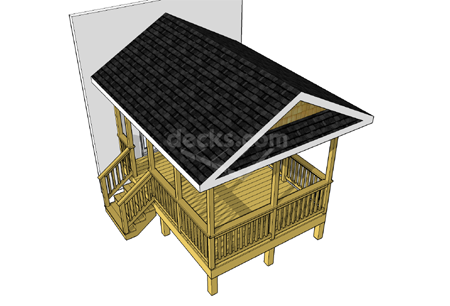 This 10' x 14' porch offers a functional and attractive enclosed space under a gable roof. The hand framed roof isn't difficult to build and is designed for a vaulted ceiling. Add screens, doors, walls, and windows to your preferences. This porch can easily be adapted to different heights by adding stairs and lengthening support posts. Porch plans come with details explaining roof construction.
