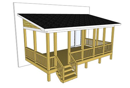 This 16' x 10' porch features a slanted shed style roof. The hand framed roof encloses the deck and can be used as a......